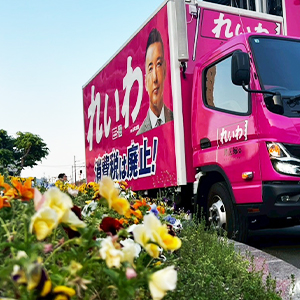 党のLEDビジョントラックを呼んで、事前の段取りや当日のチラシ配布などに参加する方法。